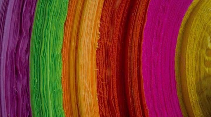 Trabajamos con tejidos de poliéster, algodón, nylon, acetato, rayón, acrílico y sus mezclas en todas las gamas de telas y colores.